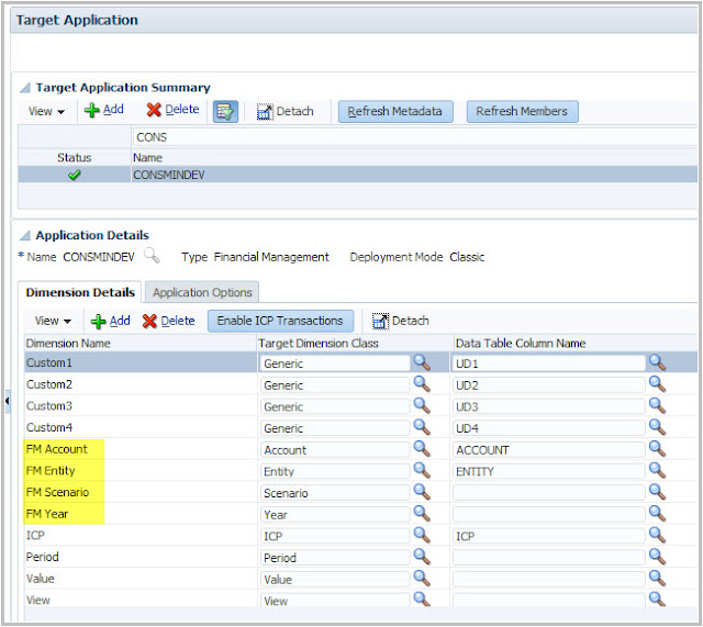 Cool! the HFM application has been created in FDMEE and dimensions have been added. Do you see anything special?